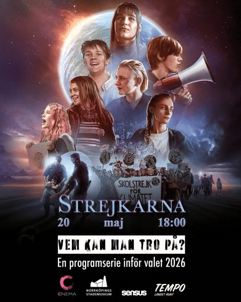 Strejkarna är den tidigare oberättade historien om kollektivet som startade den ungdomsdrivna klimatrörelsen – Fridays for Future. Visningen gästas av regissör Helena Molin och medverkande i filmen och arrangeras i samarbete med Stadsmuseet och SENSUS, med stöd av Tempo Landet runt.